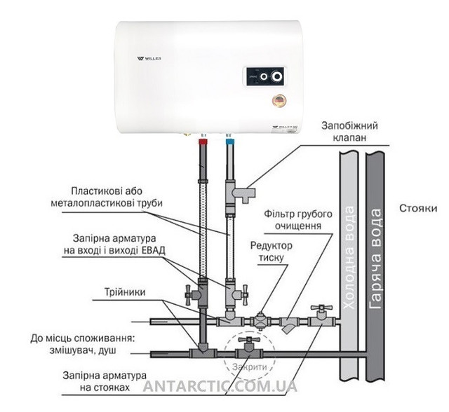 * встановлення устаткування по даній схемі гарантує офіційне сервісне обслуговування водонагрівача