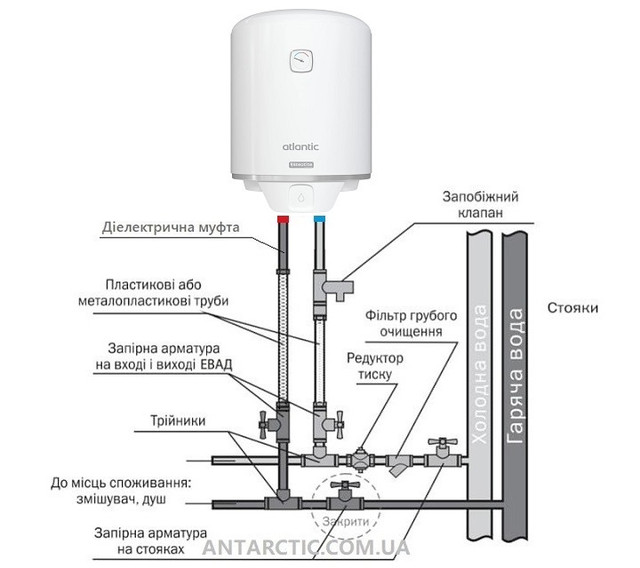 Бойлер (водонагрівач) Атлантік Стеатит Его об'ємом 100 літрів ідеально підійде для сім'ї з 4 -х осіб.