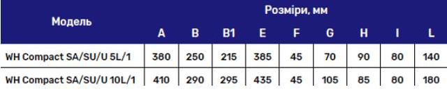 Технічні характеристики бойлер (водонагрівач) ARTI WH COMPACT SA 10L/1: